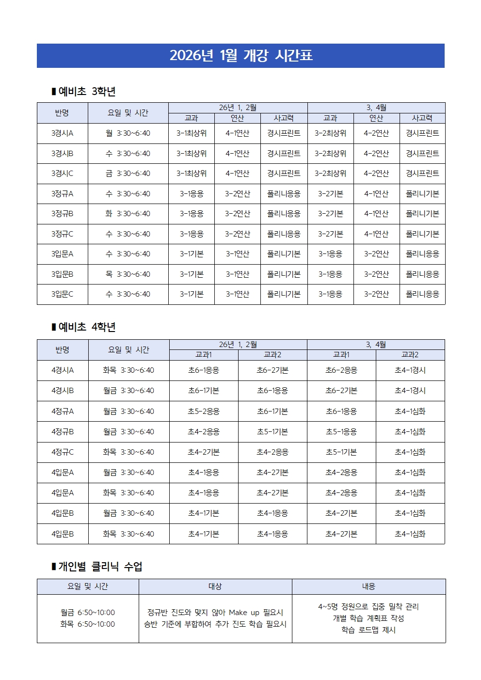 개념폴리아 학원 수업안내