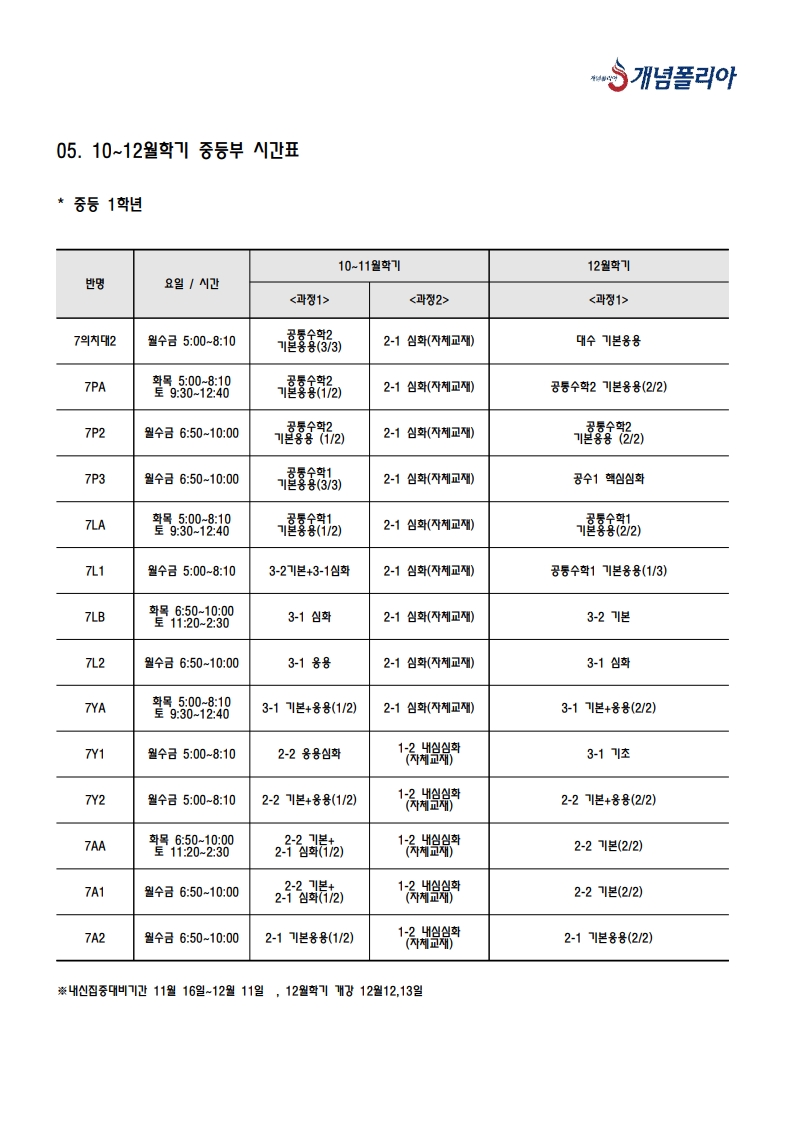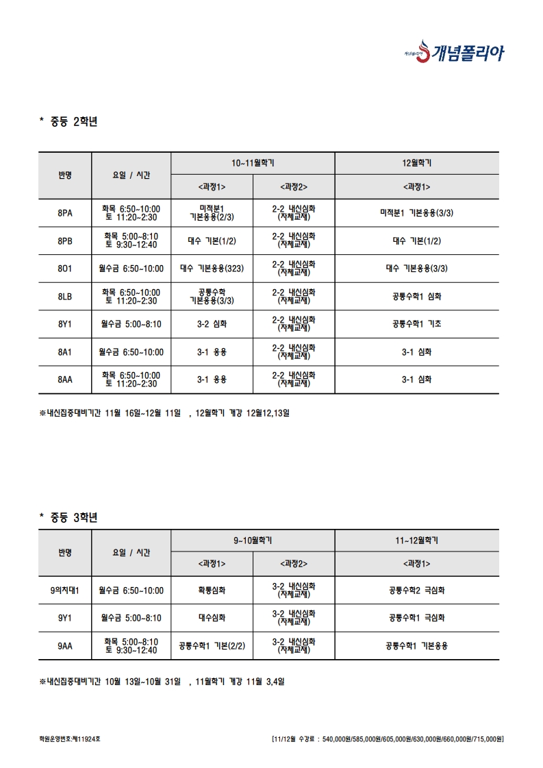 개념폴리아 학원 수업안내