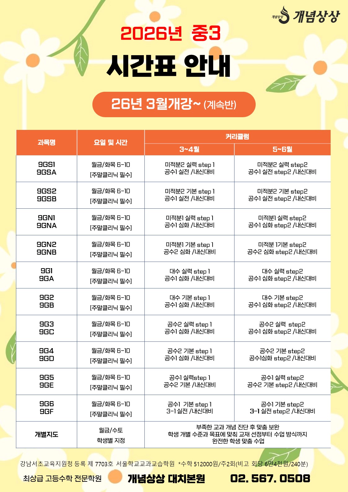 ■ 2026년 중3 연간 학습로드맵(3월 2일 개강)