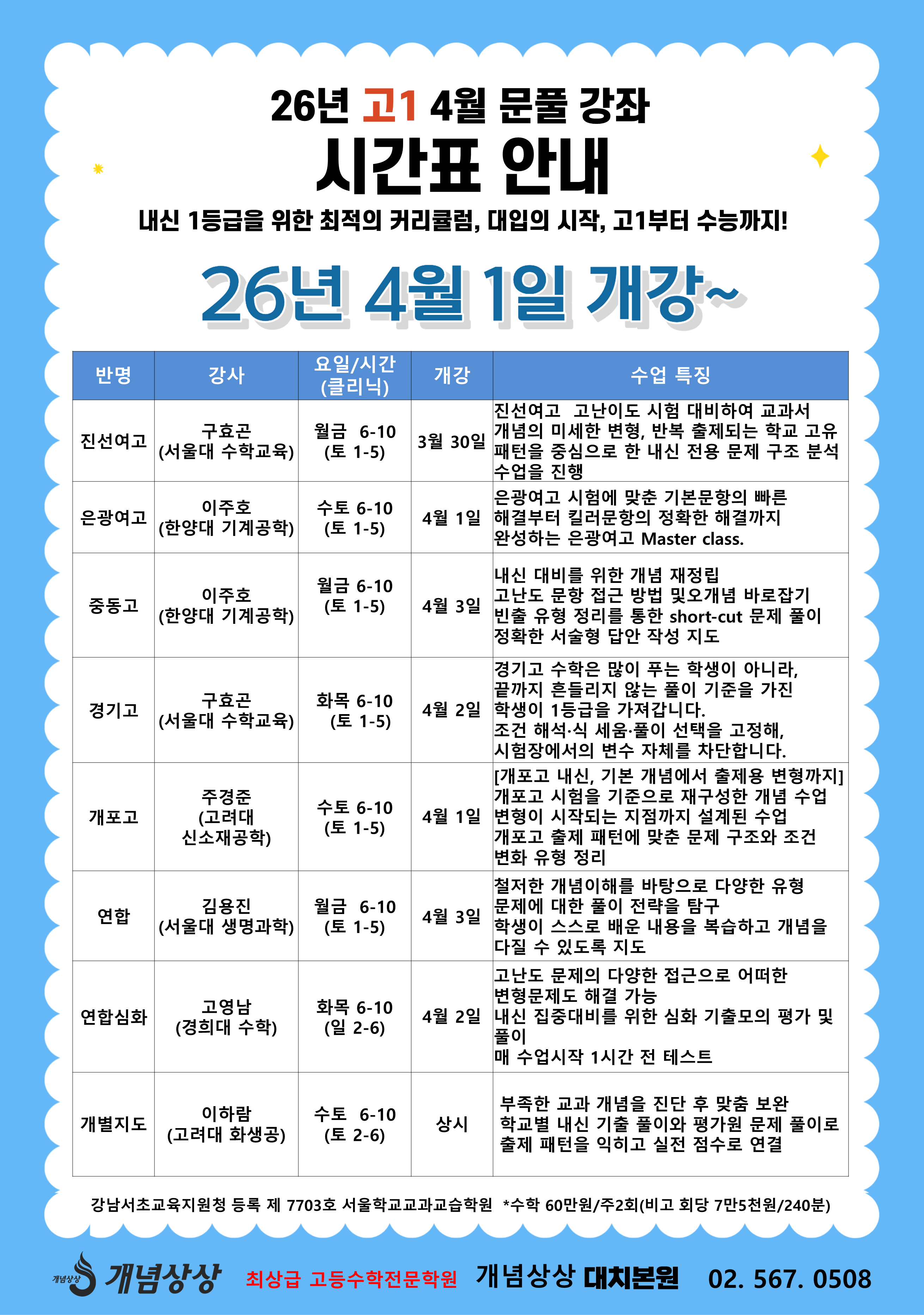 대표 : 이재익, 사업자등록번호 : 120-87-37234, 주소 : 서울특별시 강남구 도곡로 418 강원빌딩 4층 개념상상대치관, 전화 :